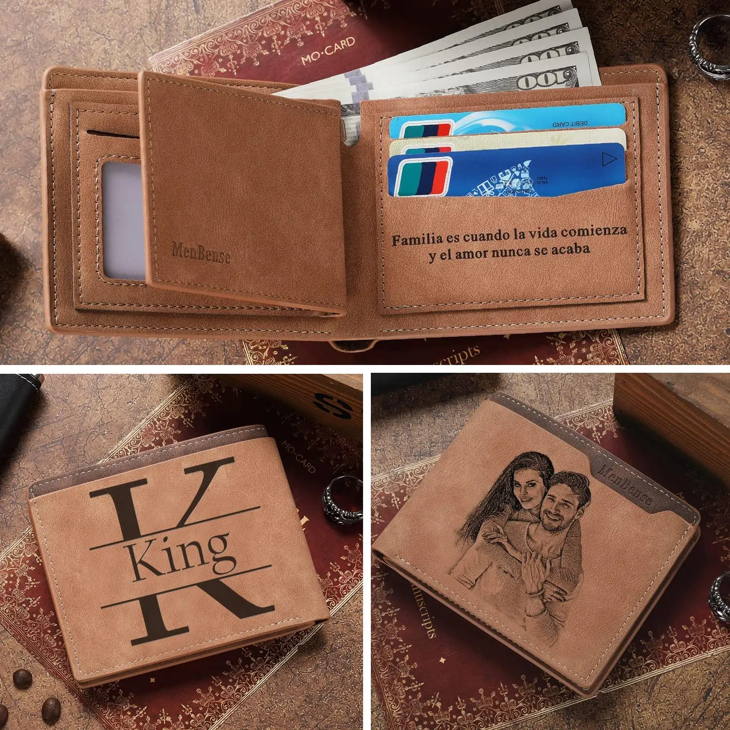 Men's Engraved Photo Wallets Custom Picture & Text Wallet Personalized Birthday Christmas Father's Day Gifts for Him Husband